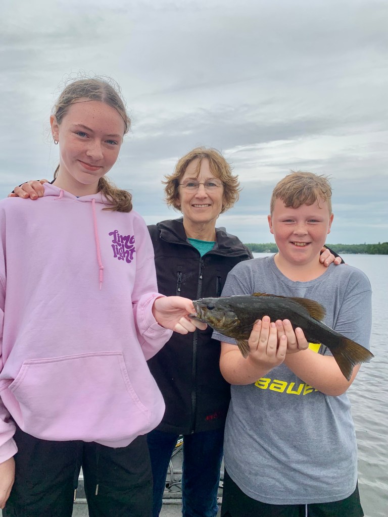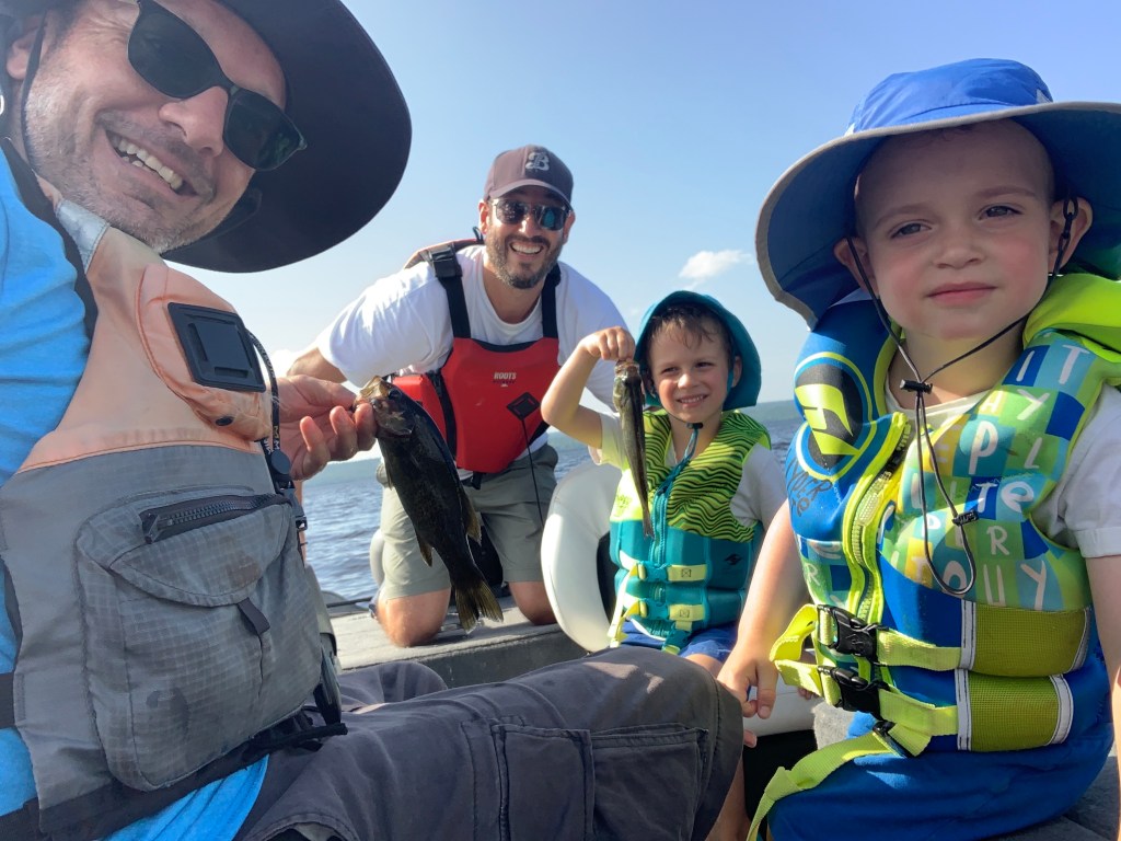 Catching smallies and eating snacks on Grand Lake on a beautiful summer day.