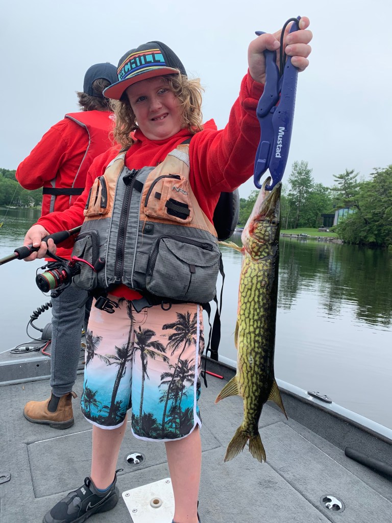 Back to the fishing, I want to hilight my favourite photo of the trip. Before that though, Hudson, Ben and Emmett were a blast to have in the boat, these kids were loving the experience of being out there, the fish caught were just a bonus. The fish we saw and didn’t catch were an even bigger bonus because that’s when we all got most excited was when the aggressive pickerel caused a commotion around the boat. Now for this picture, I very regularly catch smaller bass or pickerel and just unhook them and toss them back into the water without a second thought. It’s fun to catch them for sure, but after years of catching pickerel an average fish isn’t picture worthy, and we don’t want to extend the fish’s time out of the water unnecessarily. We definitely took a few photos of some of the larger fish and some of the boy’s first fish, but this was Hudson’s first fish of the day and he was more interested in getting the fish safely back into the water and getting back to casting than worrying about a photo of a small pickerel. That’s a seasoned veteran fisherman move right there, and I’m happy to see it. Also note, that’s a baitcaster in Hudson’s hand, and he’s a pro with it. And by pro I mean he nails casts at ease and every once in a while he spins out a birds nest and spends a minute picking it out before getting right back to casting. The only difference between Hudson and myself is I typically swear when I get a birds nest while Hudson does not (yet… he’s a fisherman, and the swearing will unfortunately come)